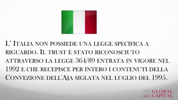 L’Italia è stato il primo paese non Common Law a firmare la Convenzione dell’Aia nel 1992 ed è poi stata applicata nel luglio del ’95. La Convenzione dell’Aia vuol dire che l’Italia non ha legge sul trust ma accetta e riconosce le leggi estere sul trust (come in Jersey, Bahamas, Israele); ci sono diverse leggi sul trust, anche se noi preferiamo usare la legge di Jersey per alcuni motivi, e la Convenzione dell’Aia riconosce le leggi estere sul trust e gli attori del trust esteri. In questo caso, noi siamo una trust company svizzera e possiamo assolutamente lavorare in Italia e fare il nostro mestiere di trustee grazie alla Convenzione dell’Aia.
